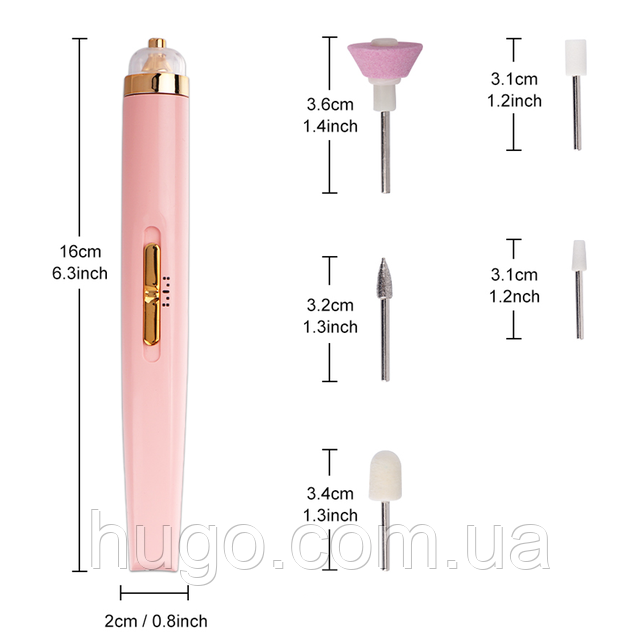 У той же час досить м'який для обробки кутикули та полірування нігтів. 5 насадок у комплекті дозволяють робити найпоширеніші операції.