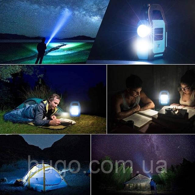 Переносний прожектор-ліхтар HS-8020D на акумуляторі (1200мАч), з USB, Сонячною панеллю та PowerBank