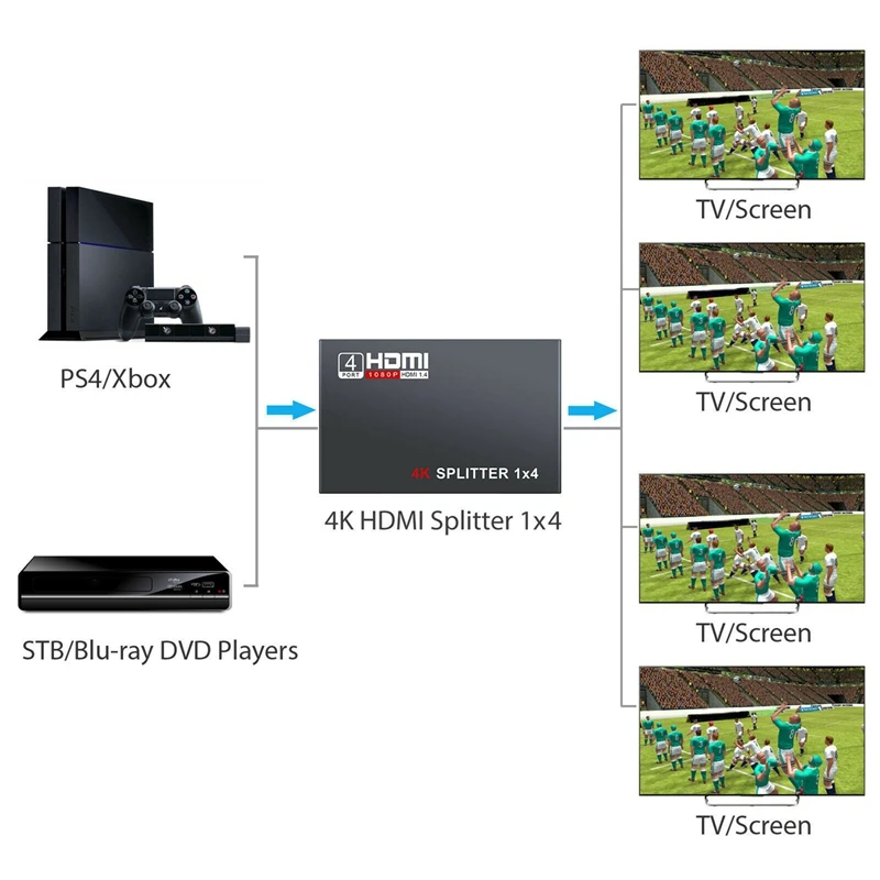 • Спліттер телевізійний 4K HDMI 1x4 порти / HDMI розгалужувач, фото 6