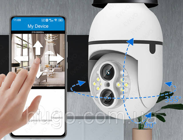 Камера відеоспостереження WIFI в патрон Е27, 4Мп із зумом 10х / Панорамна IP камера лампочка